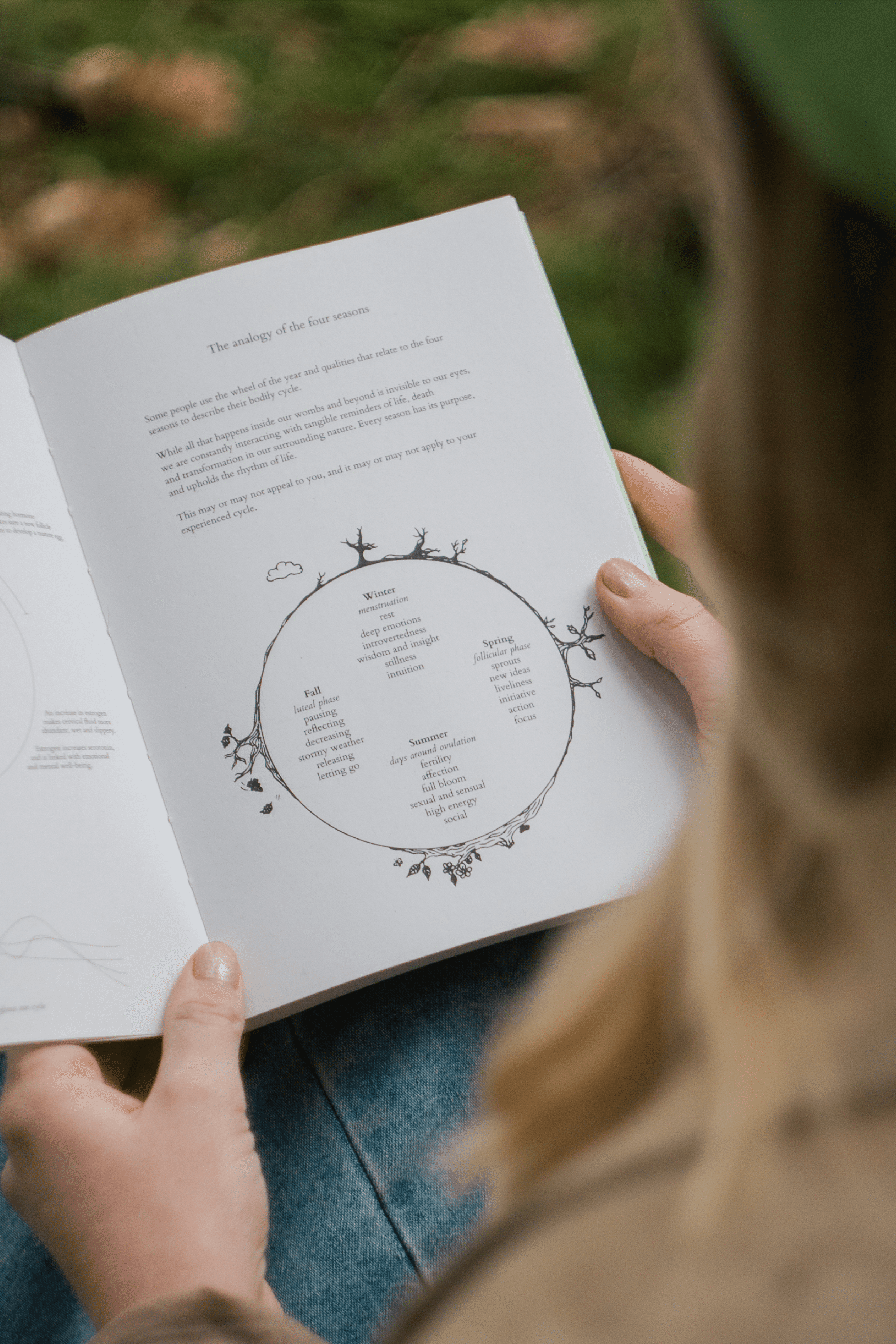 Bogen indeholder 12 cyklushjul, introduktion med viden om cyklus og smukke illustrationer.
